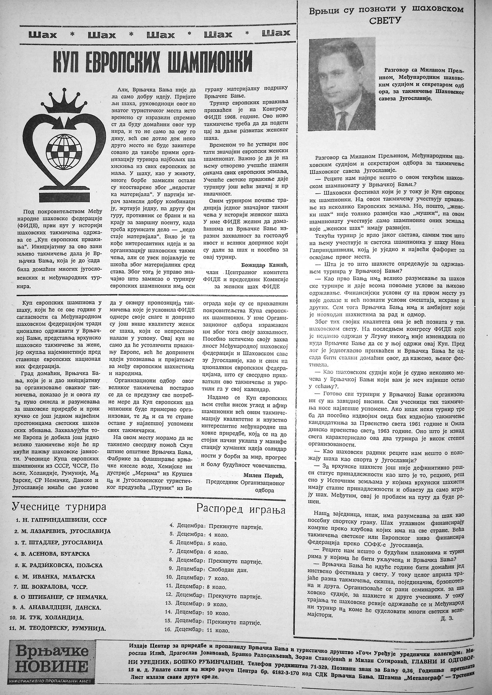 ВРЊАЧКЕ НОВИНЕ бр. 39 – година 1969.