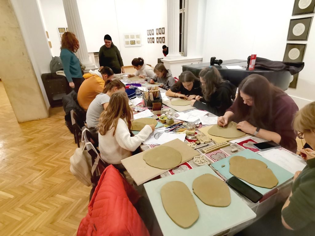 Наиме, у истом маниру, Замак културе је у оквиру поменуте изложбе организовао и креативну радионицу обраде глине. Радионицу је водила Снежана Прибаковић педагог и рукотворац уникатних предмета од глине које израђује у свом ,,Арт дућану” у Врњцима. Присутни су имали прилику да чују нешто више о самом поступку обраде глине, о изради и украшавању предмета, као и да научено примене на глиненим плочицама. Учесници радионице су украшавали своје комаде резбарењем израђујући средњовековне декоративне мотиве као и мотиве по личном избору. Снежана је упознала учеснике са четири начина декорисања глине: преношењем готове скице на глинену плочицу, исцртавањем своје скице па преношење на глинену плочицу, израда мотива који се сече а затим пратећи облик преноси на глинену плочицу и преношење мотива убодима кроз које након печења треба провући конац стварајући утисак веза на глини.