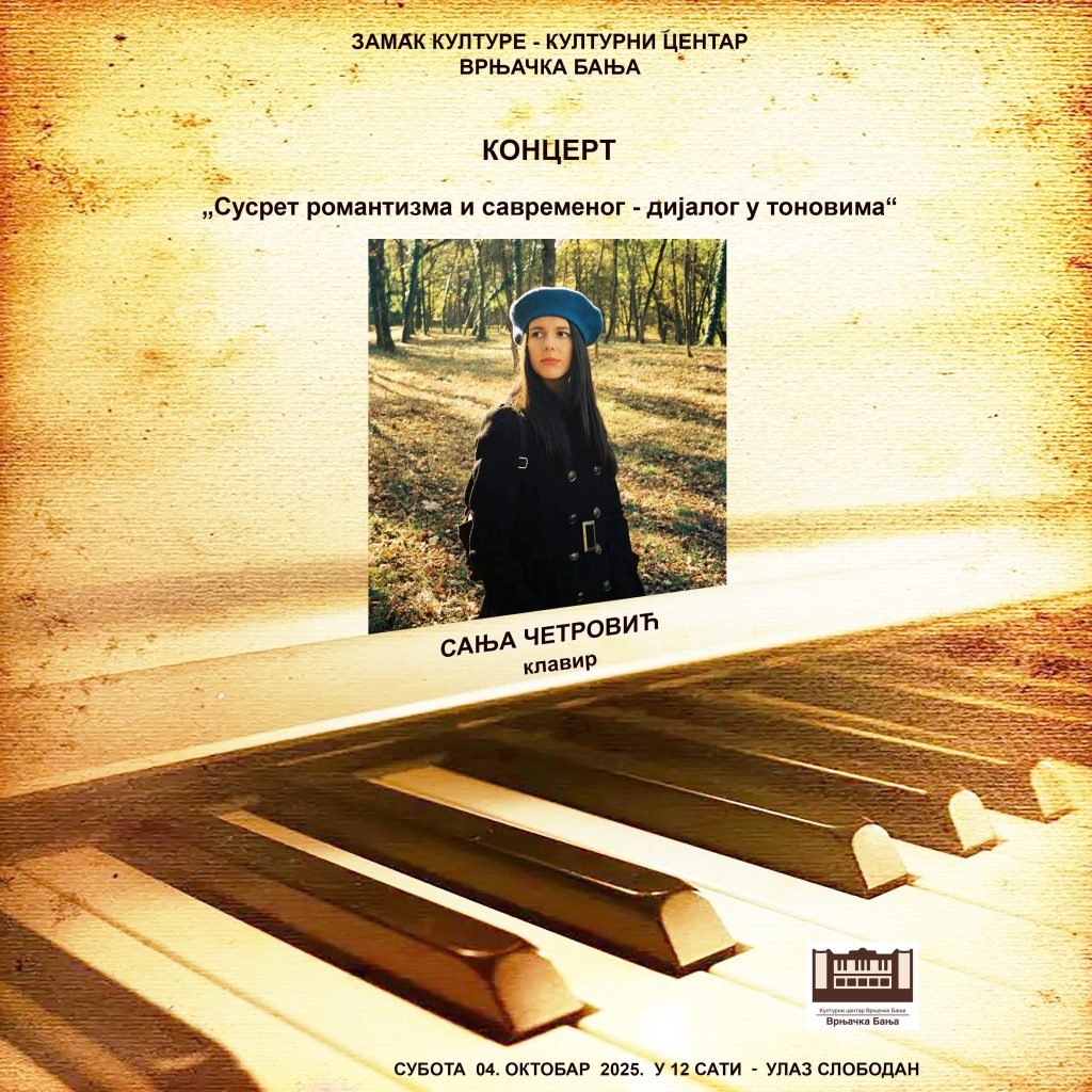 „Сусрет романтизма и савременог – дијалог у тоновима“ назив је концерта Сање Четровић који ће бити одржан у Замку културе, 4. октобра, од 12 часова.