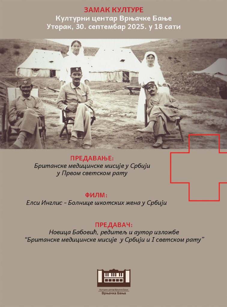 Позивамо Вас да 30. септембра у Замку културе од 18 часова присуствујете предавању о раду британских медицинских и хуманитарних организација које су пружиле помоћ Србији током Великог рата. Након предавања публика ће имати прилике да погледа и филм: “Елси Инглис-Болнице шкотских жена“. Аутор предавања и редитељ филма је Новица Бабовић.