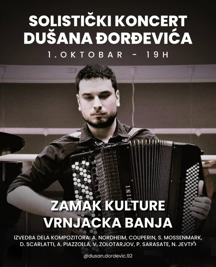 Солистички концерт Душана Ђорђевића биће уприличен 1. октобра од 19 часова у Замку културе.